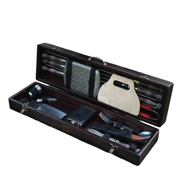 Набір шампурів ручної роботи 6 шт у дерев'яному кейсі, великий подарунковий набір шампурів 45 предметів NP-07