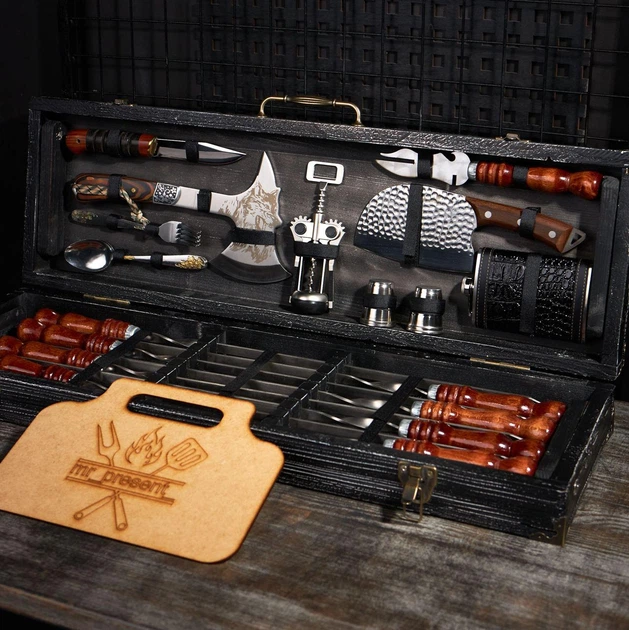 Подарунковий набір шампурів для BBQ VIKING CREATE в дерев'яному кейсі Одін подарунок чоловіку, куму, брату, другу, батьку, к
