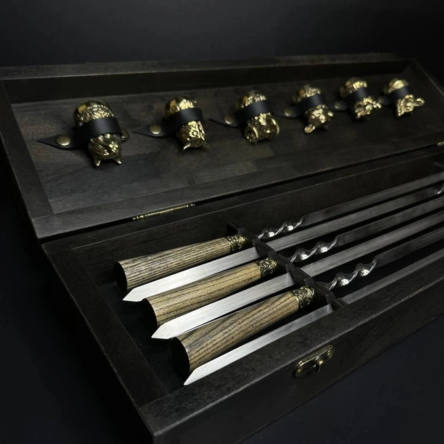 Набір розкладних шампурів із кулеметних гільз 12.7 мм. у дерев'яному кейсі s-006