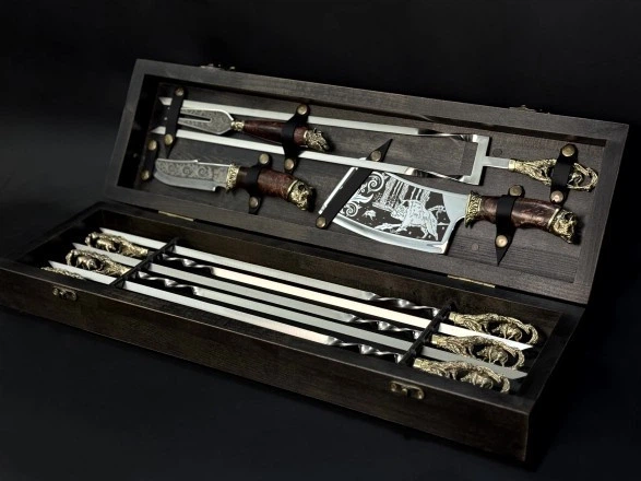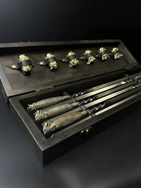Преміальний набір шампурів з бронзовим декором у дерев'яному футлярі