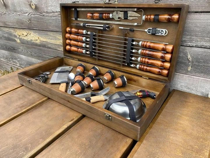 Подарунковий набір шампурів Metalzavod PN-PiknikLight кейс-стіл «Пікнік» подарунок чоловікові, куму, братові, другові, батьк