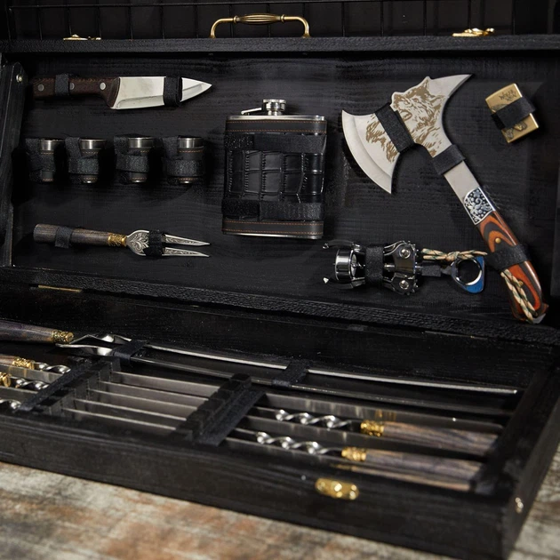 Подарунковий набір шампурів кейс-стіл "Майстер Гриль" Чорний