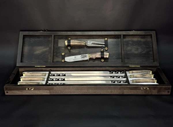 Набір розкладних шампурів із кулеметних гільз 12.7 мм. у дерев'яному кейсі