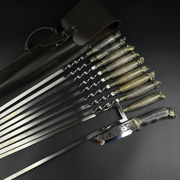 Набір шампурів у шкіряному чохлі Хижак Lux 12 R