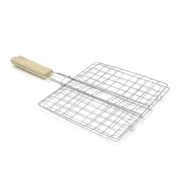 Решітка для гриля Voltronic 23х22,5 см, дерев'яна ручка 21 см, неіржавка сталь