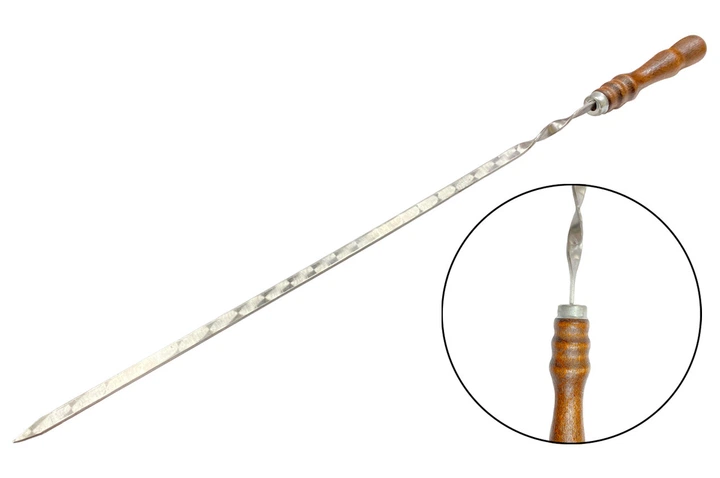 Шампур з дерев'яною лакованою ручкою із нержавіючої сталі, 730*12*3мм СИЛА