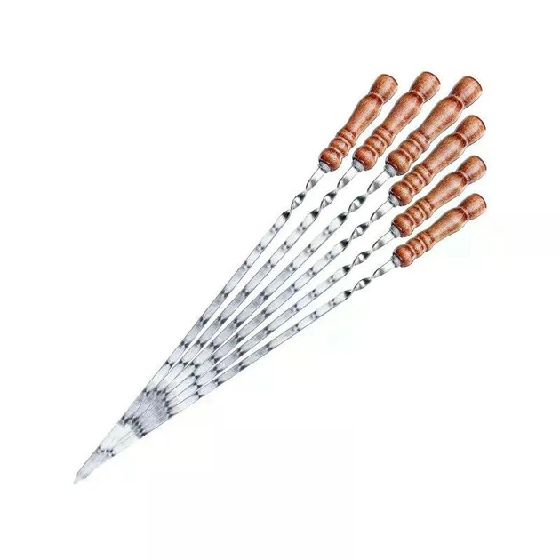 Шампур із нержавіючої сталі для шашлику з дерев'яною ручкою 620х13х3 мм