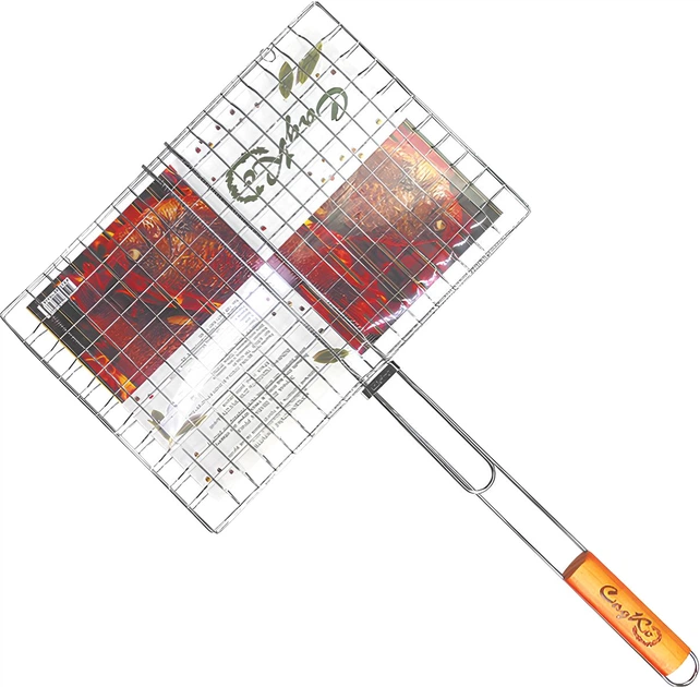 Решітка-гриль для риби з дерев'яною ручкою 36*12*2 см Скаут