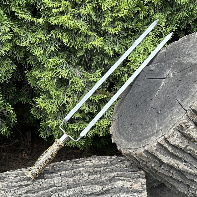 Подвійний шампур Mzavod з дерев'яною ручкою 630х12х3мм мармуровий (DBL-SHMP-DR-630x12x3-MR)