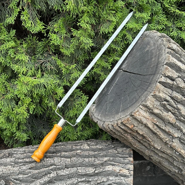 Шампур подвійний Metalzavod з дерев'яною ручкою 630х12х3 мм Світлий (DBL-SHMP-DR-630x12x3-LT)