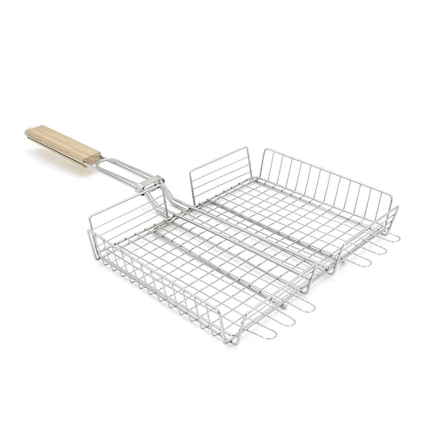 Решітка-гриль Voltronic із високим бортом, 31х25х5cm, неіржавка сталь, дерев'яна ручка