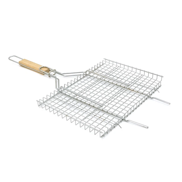 Решітка для барбекю металева 36х32 см з дерев'яною ручкою (025 D)