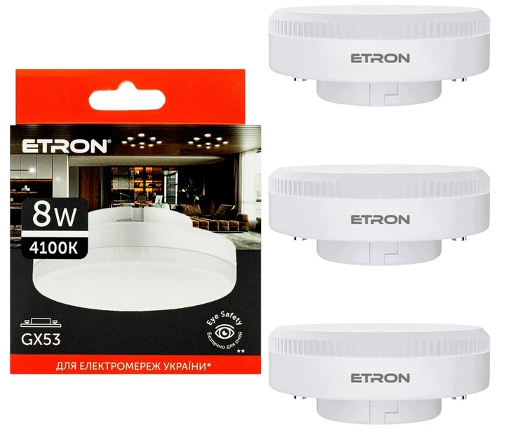 Світлодіодна лампа ETRON GX53 8W 4100K 220V (3-ELP-818) 3 шт