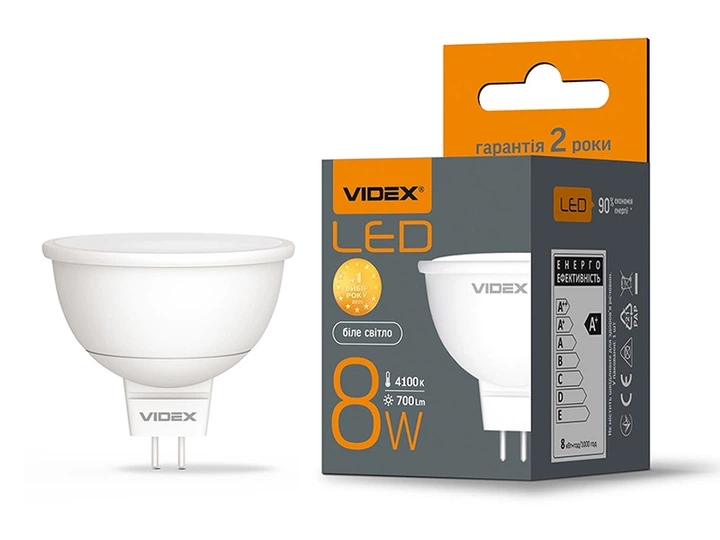 Світлодіодна лампа VIDEX MR16e 8Вт GU5.3 4100K 220В