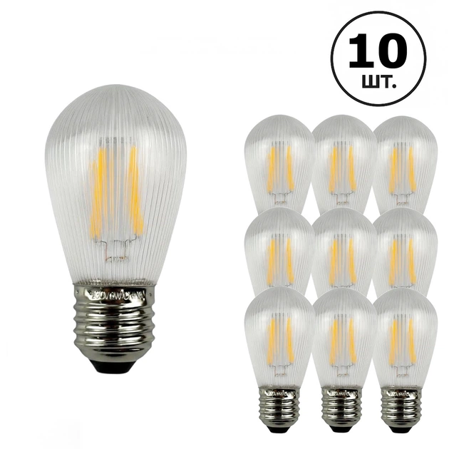 Набір з 10 LED ламп Edisons ST45 Ripple E27 2W 2200K прозора пластикова колба