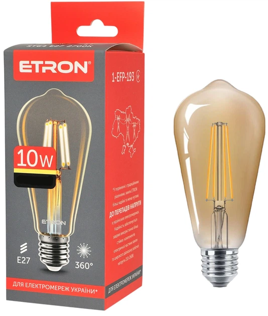 Світлодіодна філаментна лампа ETRON ST64 10W E27 2700K тепле світло, золота, енергозберігаюча