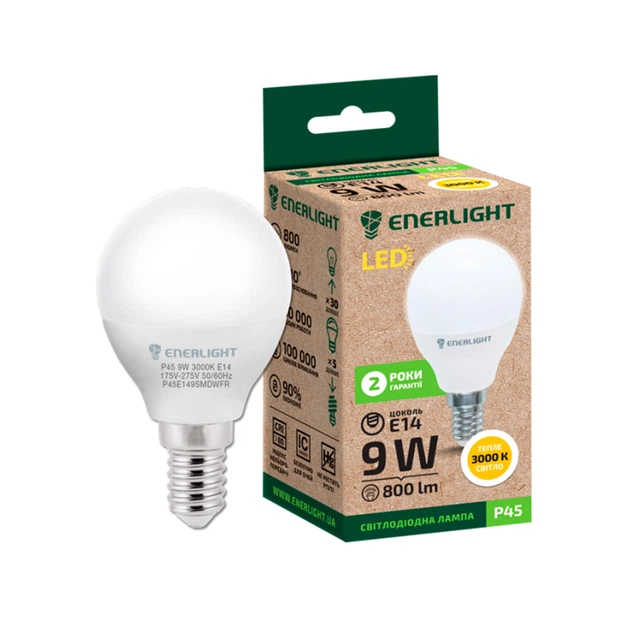 Лампа світлодіодна Enerlight P45 9W E14 3000K