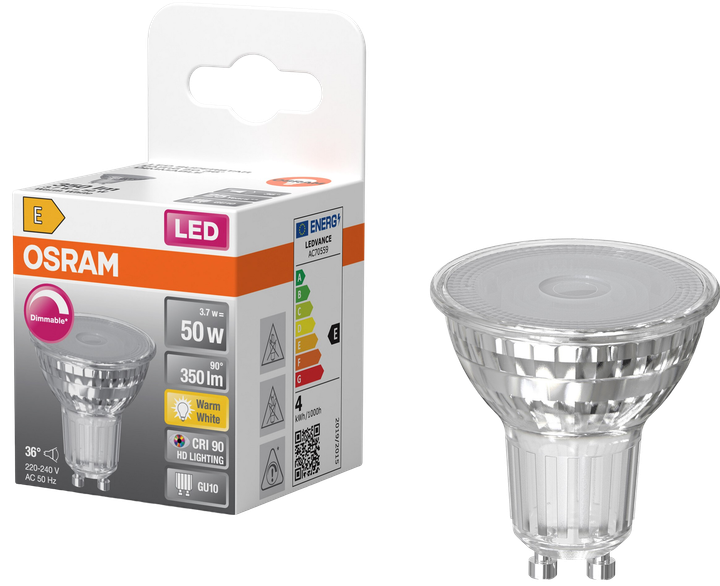Лампа LED 3,7W 230V 350lm 2700K GU10 DIM 50x54mm рефлекторна [4099854457487] Osram PAR16