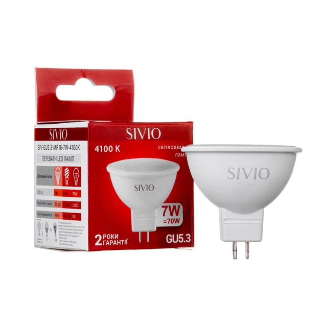 Світлодіодна (LED) лампа SIVIO 7Вт 220В GU5.3 MR16 3000K - тепла, аналог галогенових ламп