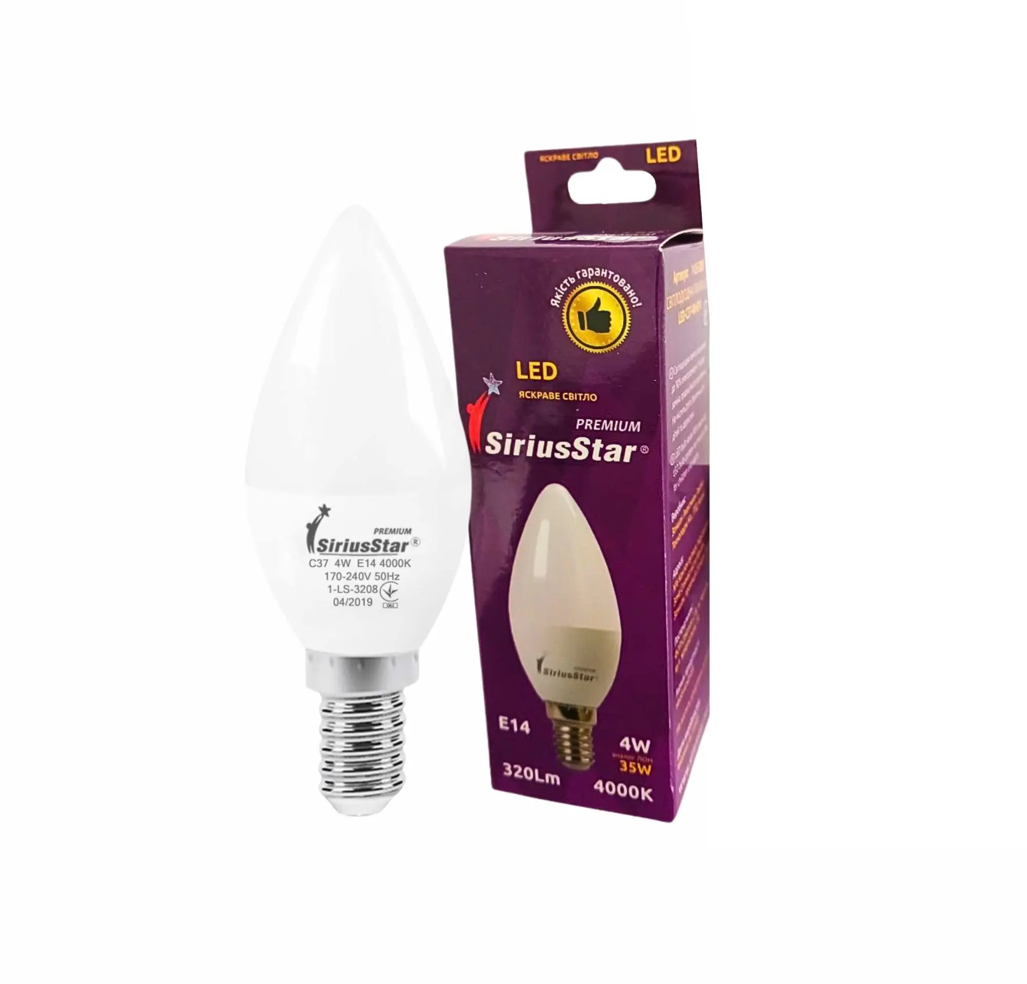 Світлодіодна лампа SIRIUSSTAR 3208 С37 4W-4000K-E14