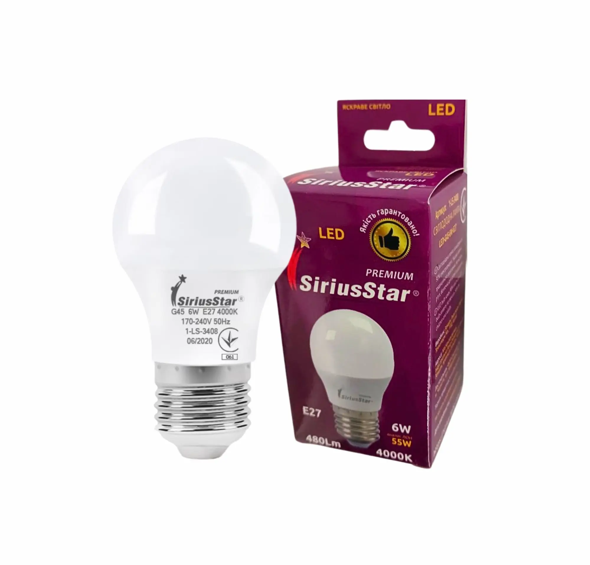 Світлодіодна лампа SIRIUSSTAR 3408 G45 6W-4000K-E27