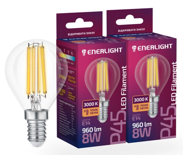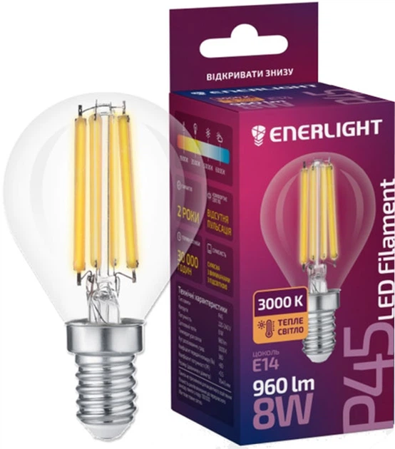 Світлодіодна лампа Enerlight Filament P45 8Вт 3000К Е14 (P45E148FILWGL)