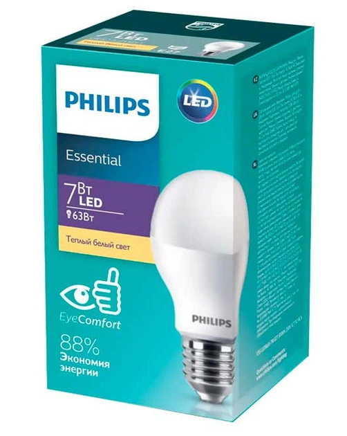 Лампа світлодіодна PHILIPS 7W E27 3000K LEDBulb A60