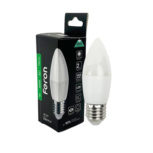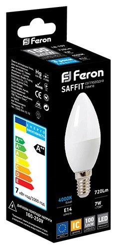 Світлодіодна лампа Feron LB197 7W Е14 4000К типу C37 "свічка" для загального та декоративного освітлення