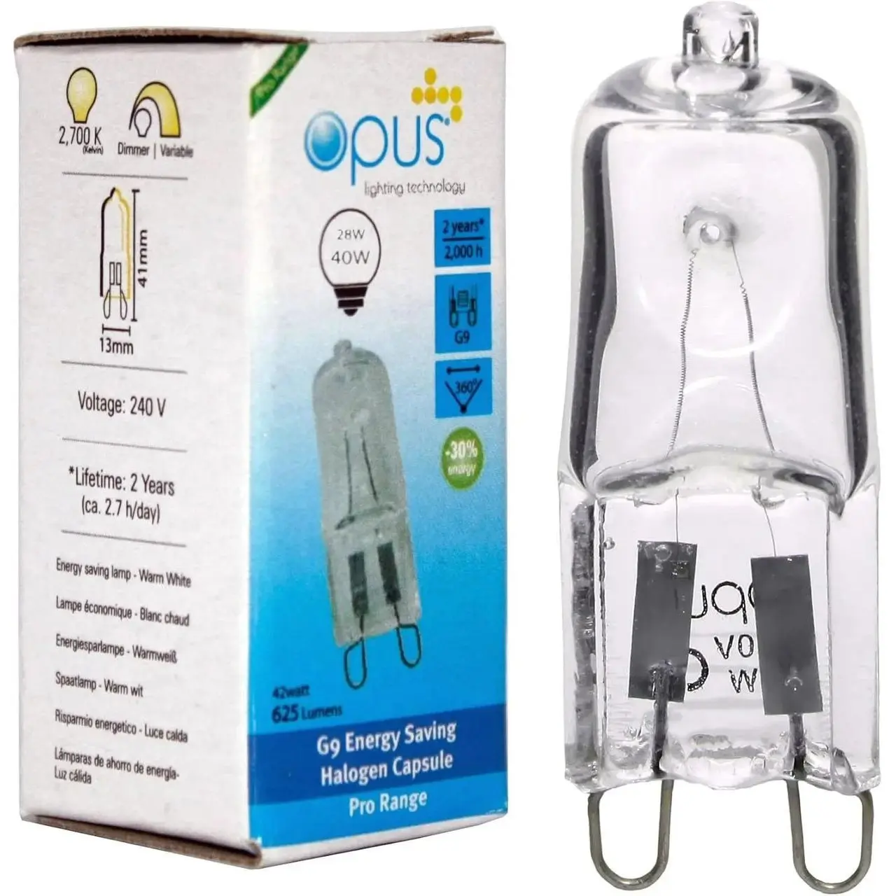 5 x Opus G9 28 Вт = 40 Вт 240 В прозорі довговічні екологічні галогенні лампочки з регулюванням яскравості