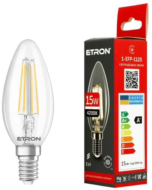 Світлодіодна філаментна лампа ETRON Filament 1-EFP-1120 С37 15Вт 4200K Е14