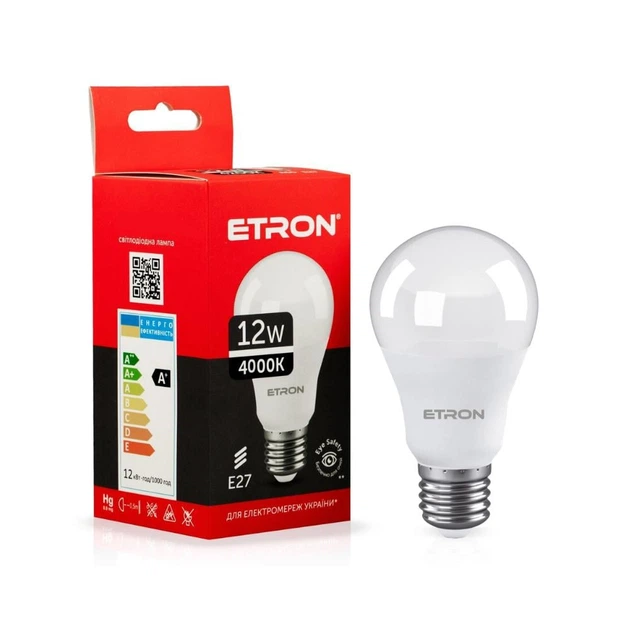 Світлодіодна лампа LED 12W A60 220V 4200K E27 ETRON 1-ELP-006