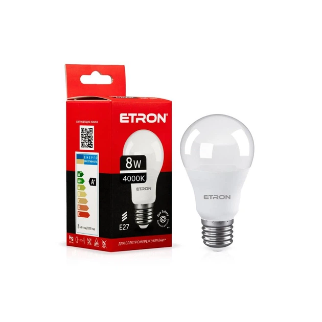 Світлодіодна лампа LED 8W 4000K E27 A55 220V ETRON 1-ELP-010