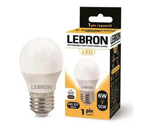 Лампа світлодіодна L-G45 6Вт 4100K Е27 Lebron (11-12-47)