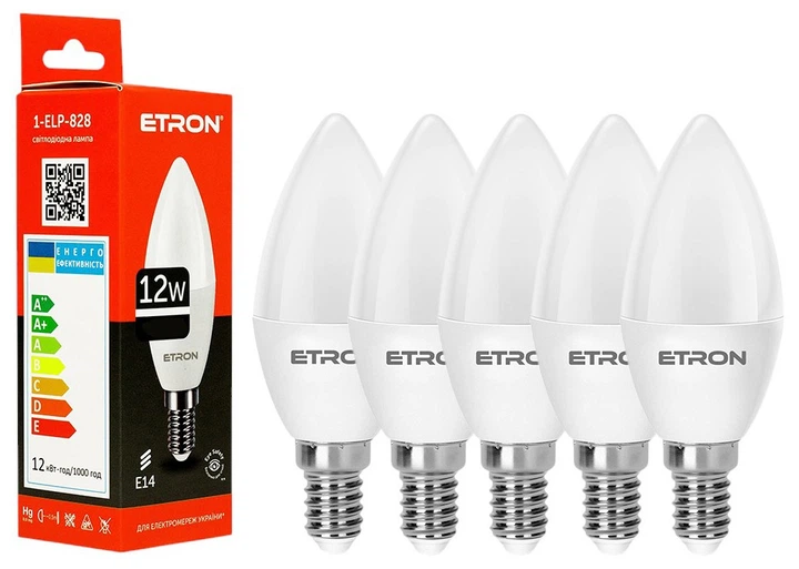 Світлодіодна лампа ETRON 12 Вт C37 E14 4000K (5-ELP-828) 5 шт