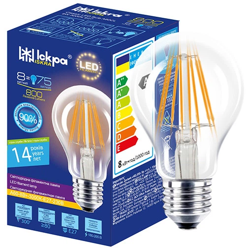 Світлодіодна лампа LED Filament A60 8W 3000K E27 (прозора) ТМ "Іскра"