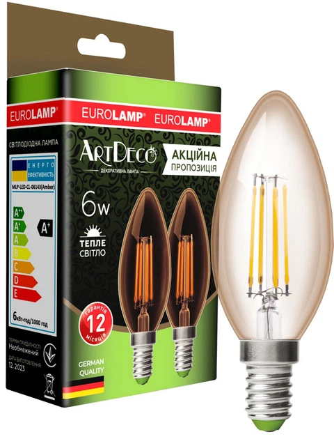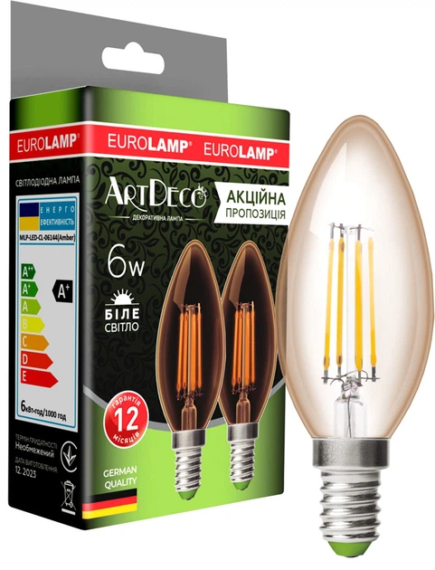 Філаментна лампа EUROLAMP LED CL 6W 620 Lm E14 3000K deco 2шт