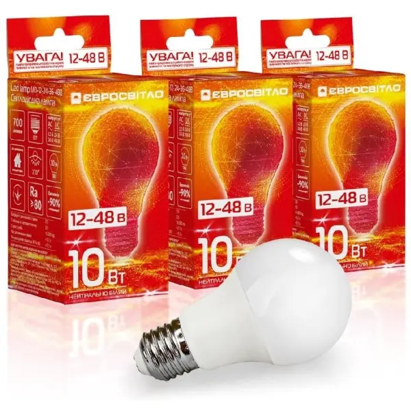 Набір із 3шт Лампа світлодіодна Євросвітло МО-12-24-36-48В 10 Вт E27 (58080) Акція!