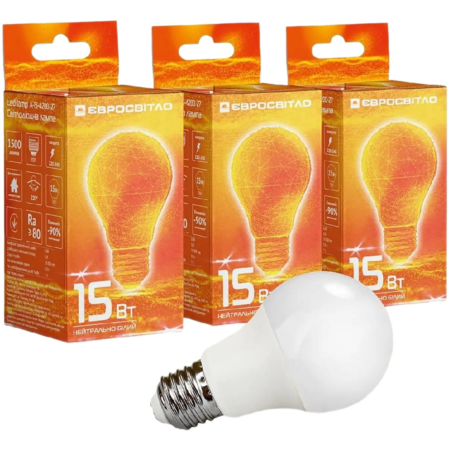 Набір світлодіодних ламп Євросвітло 15 Вт 4200 К A-15-4200-27 Е 27 3 шт. (56824)