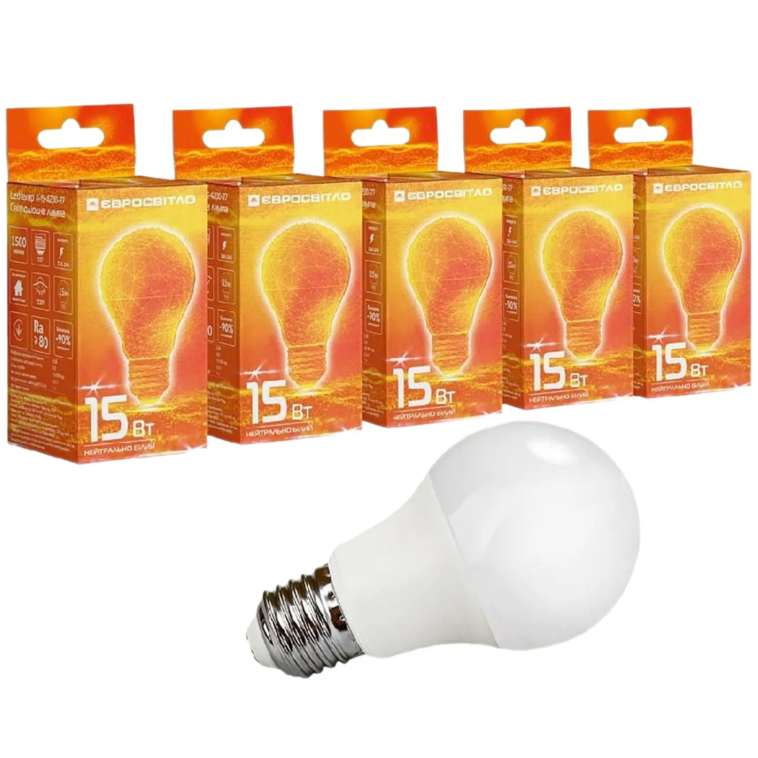 Набір світлодіодних ламп Євросвітло 15 Вт 4200 К A-15-4200-27 Е 27, 5 шт. (40912)