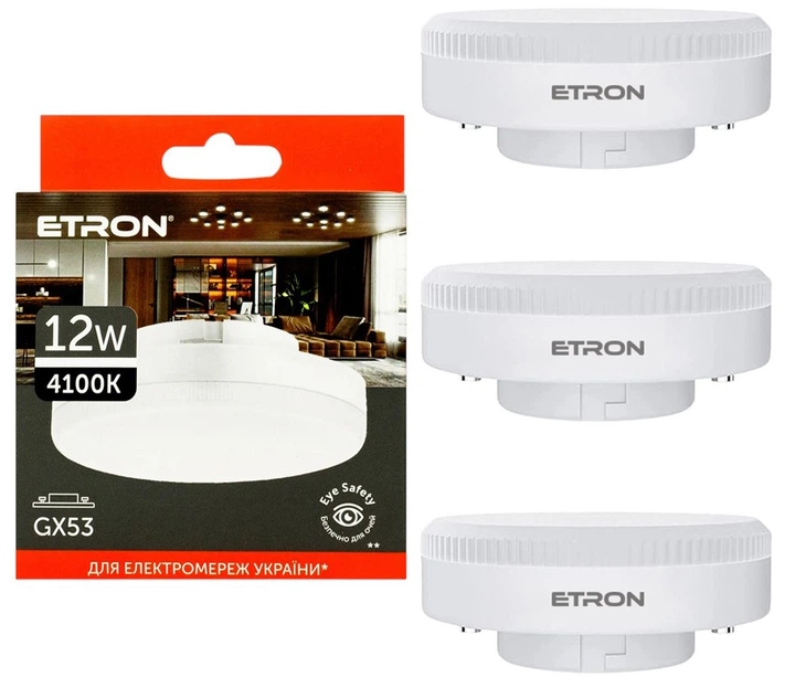Світлодіодна лампа ETRON GX53 12W 4100K 220V (3-ELP-814) 3 шт