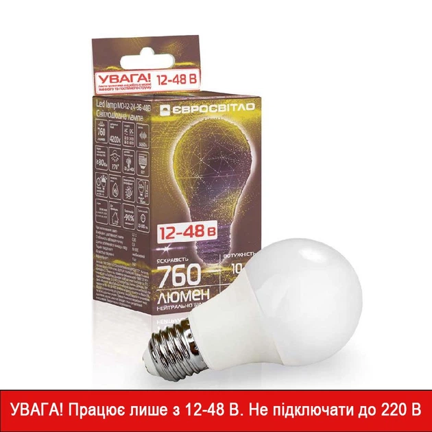 Світлодіодна лампа Євросвітло низковольтна МО-12-24-36-48В 10 Вт E27 (2100008965351)
