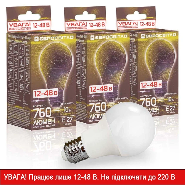Світлодіодна лампа Євросвітло низковольтна МО-12-24-36-48В 10 Вт E27 3 шт