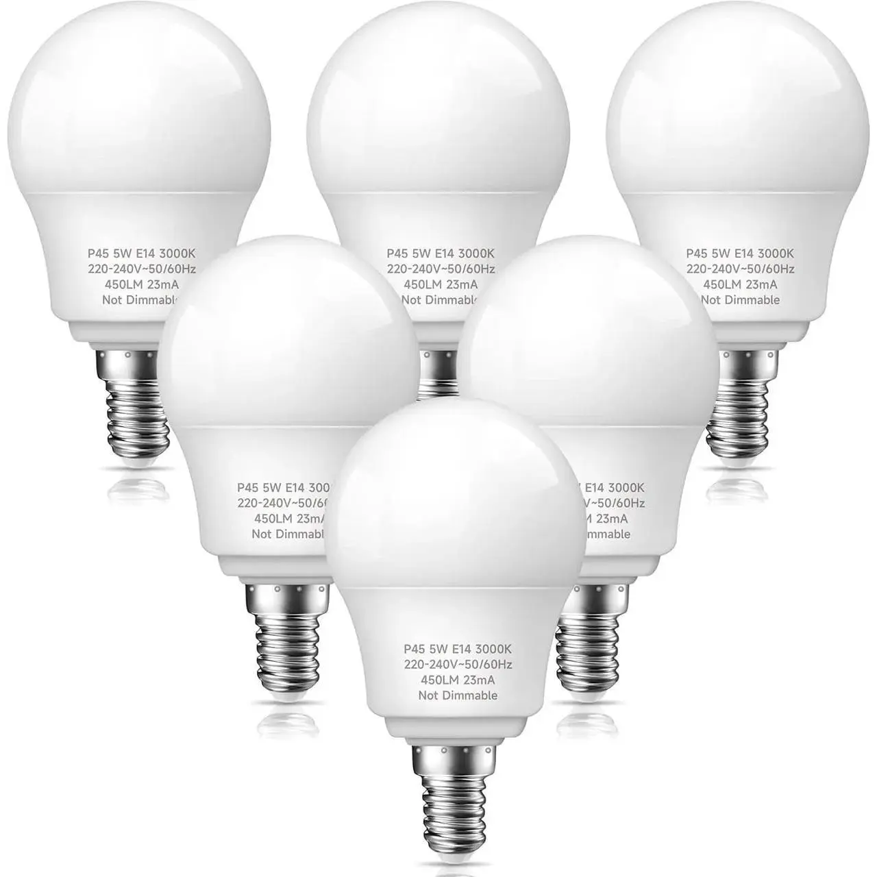 Світлодіодна лампа Plusluck E14, кульки P45 E14, лампа для гольфу SES E14, теплий білий 3000K, 5 Вт, еквівалент 40 Вт, 450LM