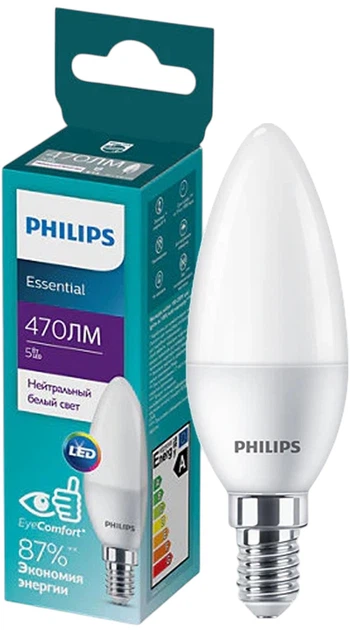 Світлодіодна лампа Philips ESSLEDCandle 5W 470lm E14 840 B35NDFRRCA (929002968807)
