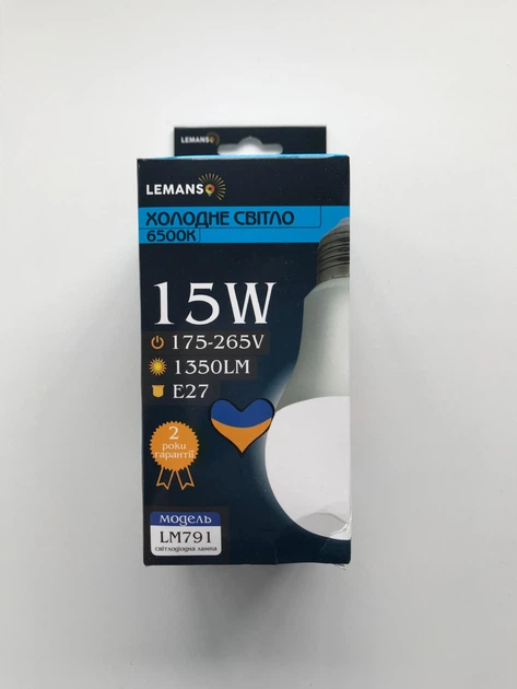 Світлодіодна лед LED лампа 15W 15Вт Е27 6500К білий холодний колір