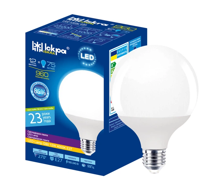 Світлодіодна лампа LED G80 12W 4000K E27 ТМ "Іскра"
