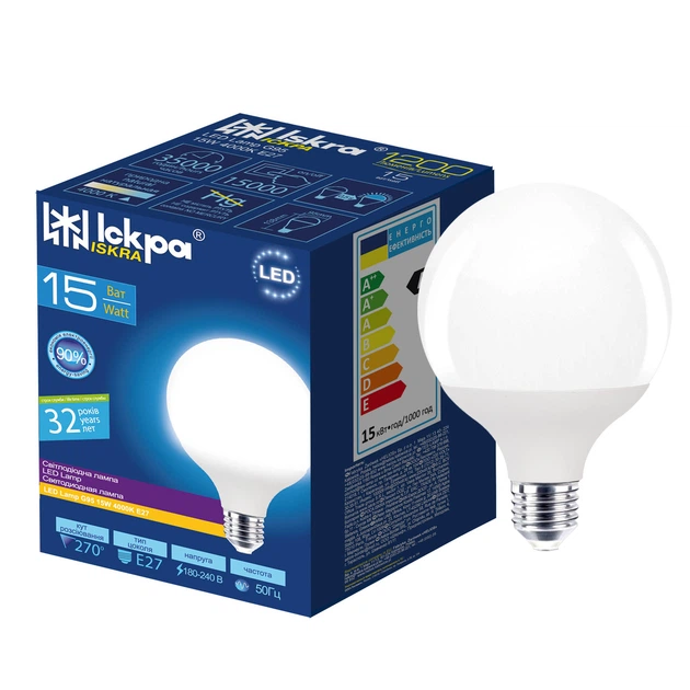 Світлодіодна лампа LED G95 15W 4000K E27 ТМ "Іскра"
