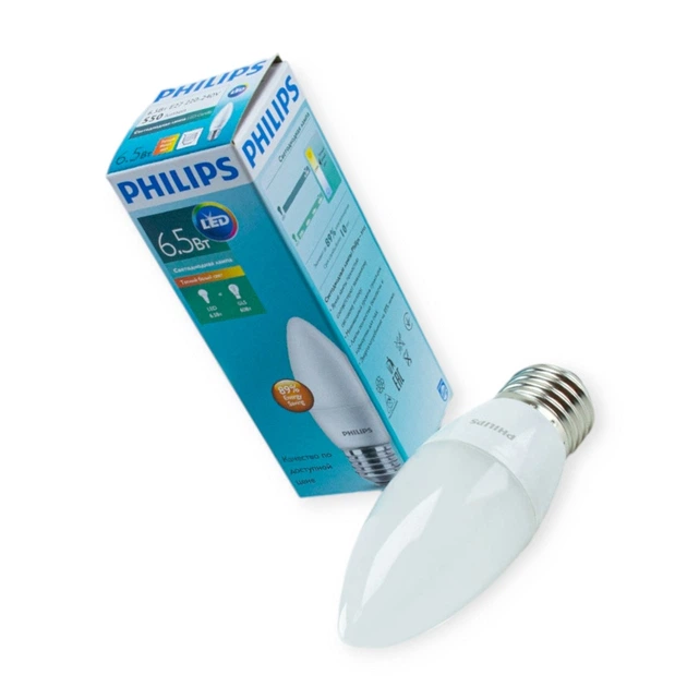 Лампа побутова діодна 220V E27 6.5-60W 827 B35 2700К PHILIPS