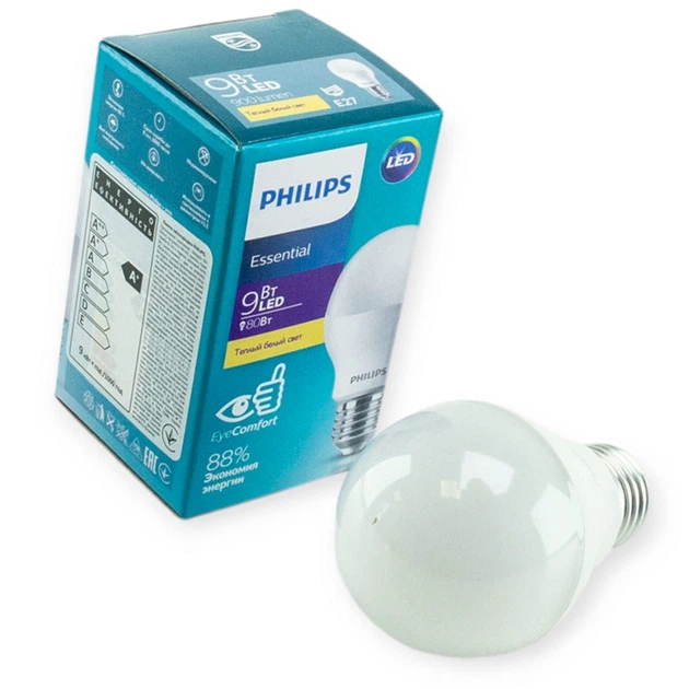 Лампа побутова діодна 220V E27 9W A60 3000K PHILIPS