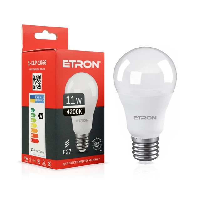 Світлодіодна лампа ETRON A60 11W 4200K E27 1-ELP-1066 10 шт